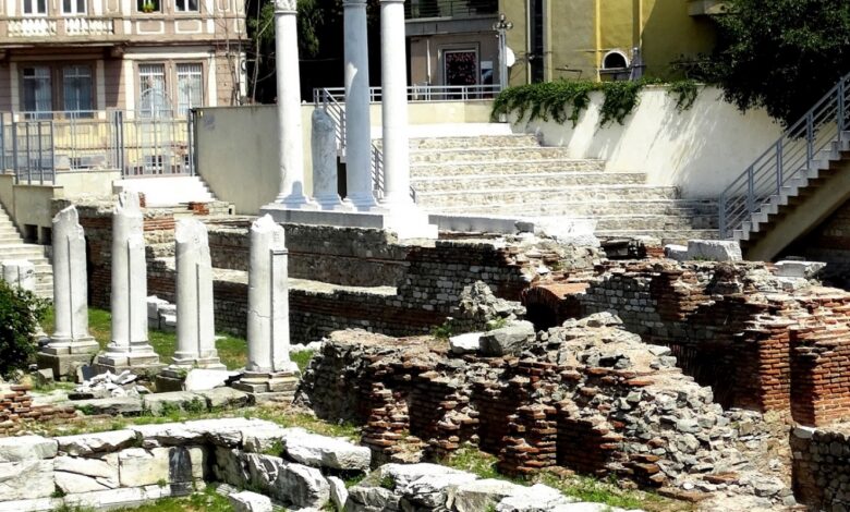 Пловдив е един от малкото съвременни европейски градове, с добре запазен Римски форум с Одеон. Форумът е бил търговски, административен и религиозен център на античния град. Там са се провеждали събрания, дебати, празници, държавни дела. Градският площад в древността е разположен на площ от 20 декара. На северната страна е изграден комплекс от обществени сгради, който е доминирал над останалите постройки на площада. Главните улици cardo maximus и decumanus maximus се пресичат пред източния вход на комплекса. В северната страна на форумния комплекс са разположени обществените- Одеона, Сградата на съкровищата, градската Библиотека. Там са открити надписи, свързани с религиозния и административен живот на града, както и част от афиш за провеждането на гладиаторски борби. Малко са градовете, в които още през Античността е имало библиотеки. Античният Филипопол е един от тях. В онези времена библиотеките били сгради, които служели не само за съхранение на ръкописи и свитъци, но и като място за образование, литературни четения, публични дискусии и речи.