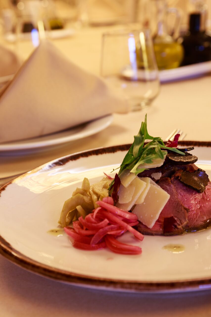В ресторанта се готви абсолютно и единствено с продукти, съобразени със сезона, които се зареждат всекидневно, за да се гарантира тяхната свежест и превъзходни вкусови качества. Всичко се приготвя на място – от ръчно замесения хляб до прясната паста и натуралните десерти. Самият шеф подбира своите доставчици, като се опитва да залага на малки мандри и стопанства, където вкусът на продуктите е максимално автентичен.