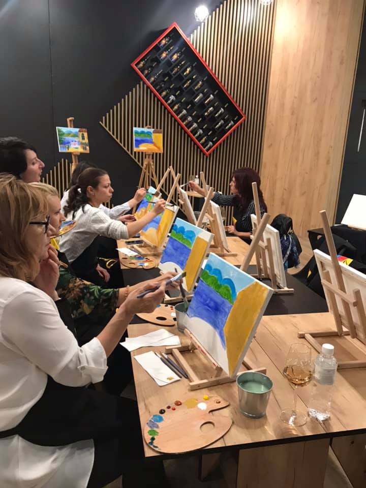 Атмосферата е подчертано творческа, но по онзи приятно задушевен и релаксиращ начин, без конкуренция и стрес. Всеки има своята чаша, четка и художествени материали, с които е свободен да създаде магия от цветове по бялото платно и да си тръгне след това с усмивка и силен положителен заряд.
