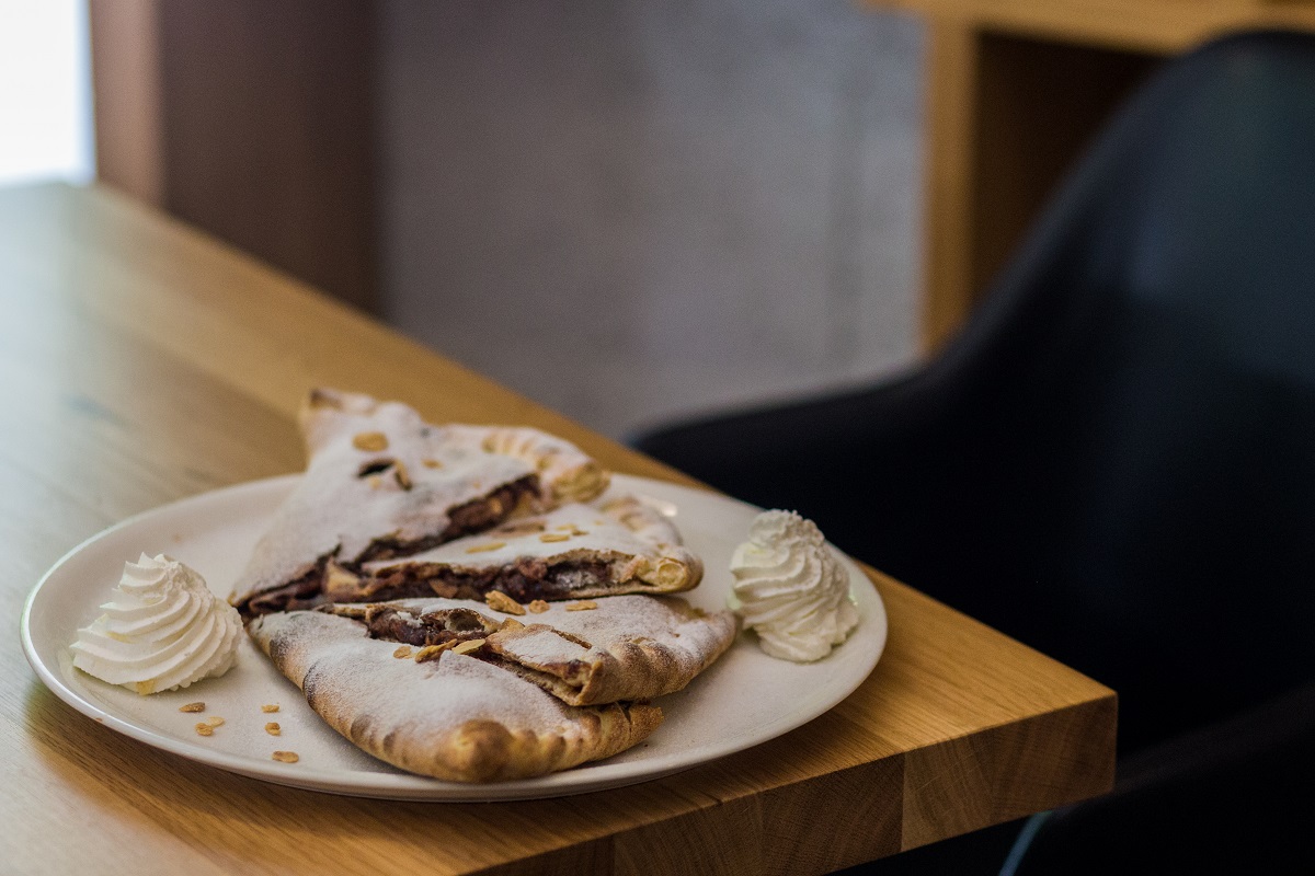 Пицата като десерт може и да звучи като нещо невероятно и несъвместимо, но веднага предупреждаваме да не бъдете предубедени. „Лудата” пица – наистина е с абсолютно немислима комбинация – тесто за пица, плътен течен шоколад, поръсено с пудра захар и филирани бадеми. Истинско пиршество за сетивата и любимото лакомство на всички малки посетители.