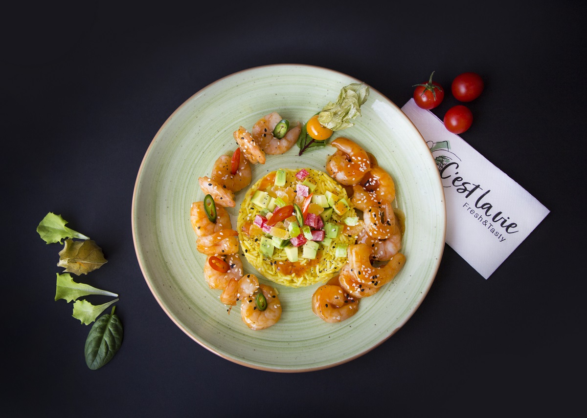 По-интересните рецепти са разработени от готвачите и одобрени от персонала, а на въпроса ни кое най-много си поръчват клиентите имаме еднозначен отговор. Любимо основно са скаридите с манго сос и авокадо върху канапе от басмати ориз, а най-предпочитан десерт – тортата C’est la vie с тайните съставки на шеф-готвача.
