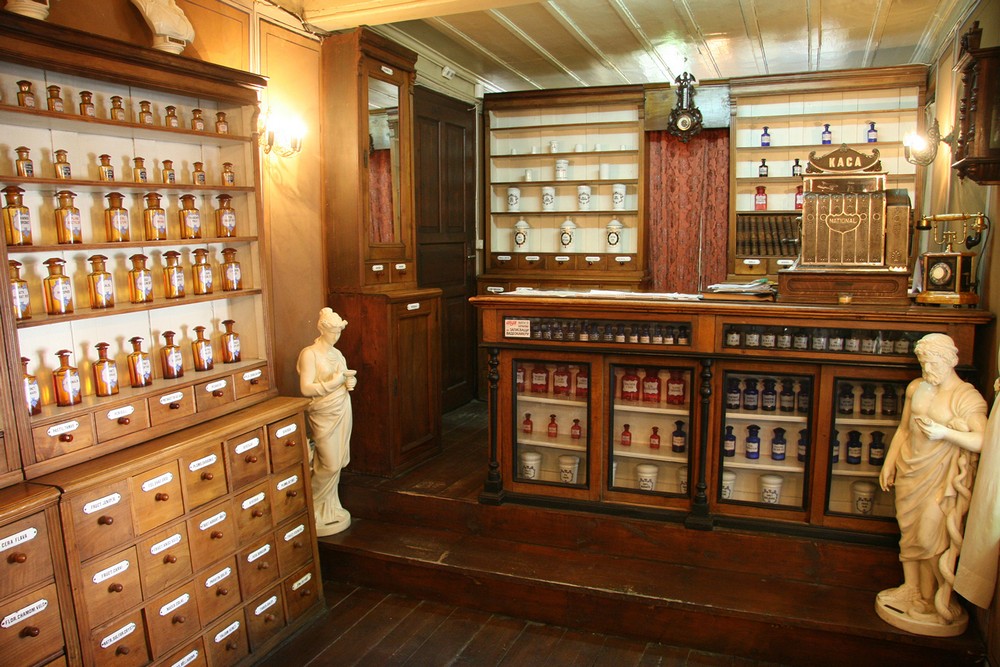 Today, the former pharmacy has been transformed into a museum exposition of the Old Pharmacy Hippocrates. It introduces us to the various methods for preparing extracts, tinctures, how laboratory tests were performed, and presents a number of pharmaceutical instruments and equipment manufactured mainly in Vienna and Berlin.